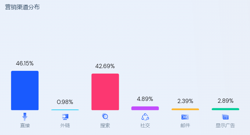 Similarweb可以帮助我们发现竞争对手的流量来源分布,帮助我们做流量渠道的选择。